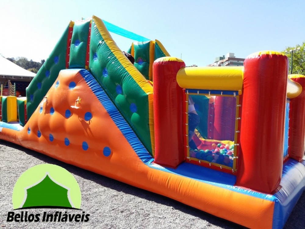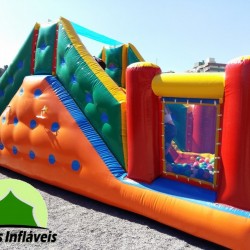 Tobogã feito em KP 1.000 sendo o melhor material hoje no mercado, não possui arco, tem 02 rampas de escorrega e 01 escada para proteger as paredes, somente uma portinha de acesso para melhor segurança dos usuários, telas dentro do inflável a cada 60cm com reforço em toda sua dimensão e ilhós a cada 15cm para uma manutenção sem gastos, paredes superior com total segurança possuindo um sistema de não aglomeração de usuários com proteção de tela para que não haja os famosos pulos para escorregar. Painel e opcional.